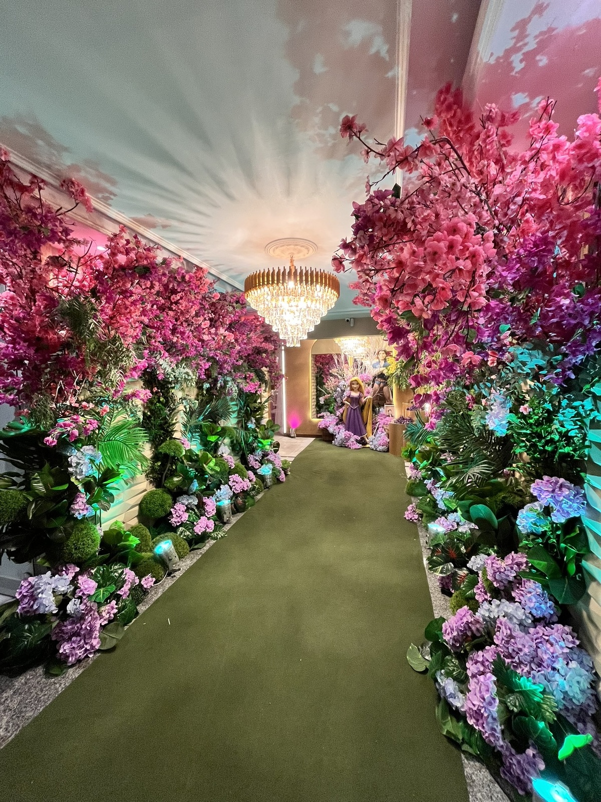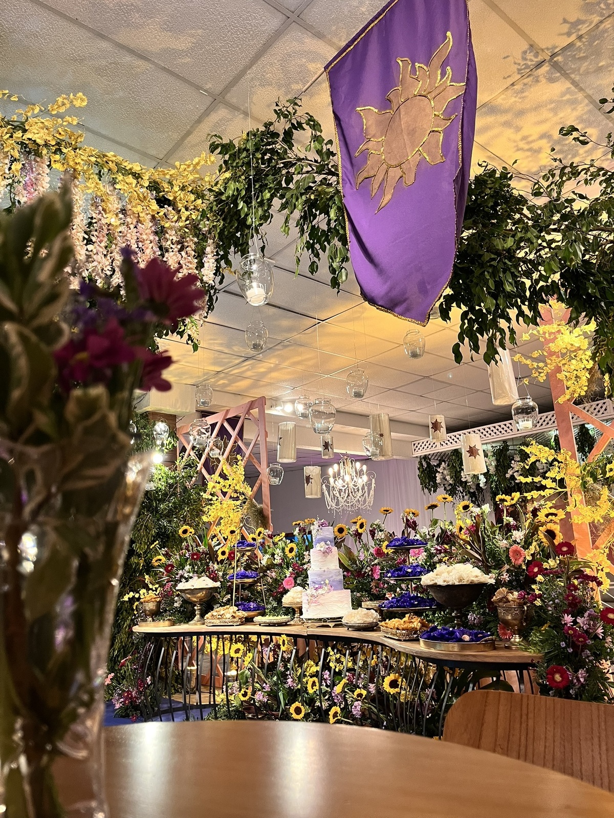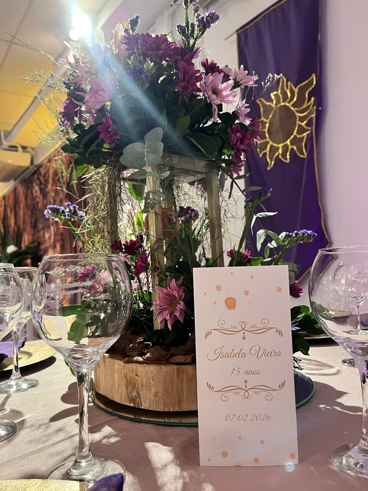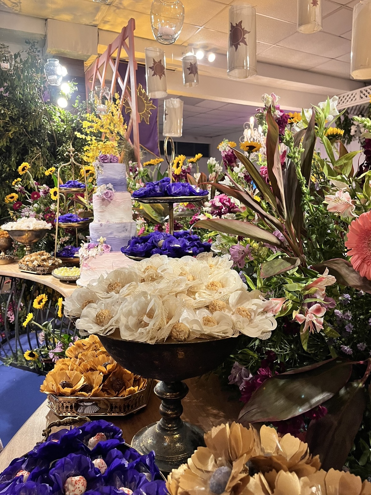 Cada detalhe dessa festa de 15 anos foi pensado para encantar: flores abundantes, cores vibrantes, luzes suaves e um caminho que conduzia direto para a magia do tema.