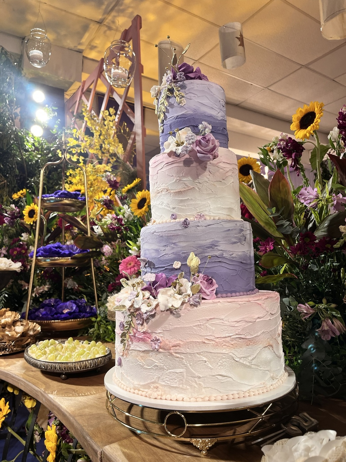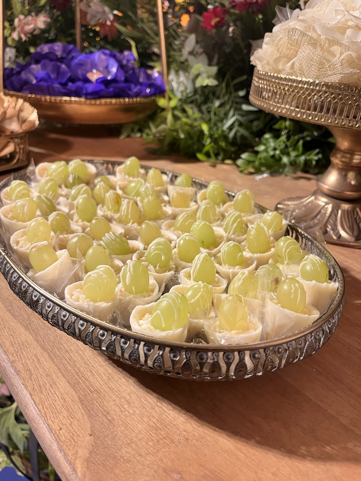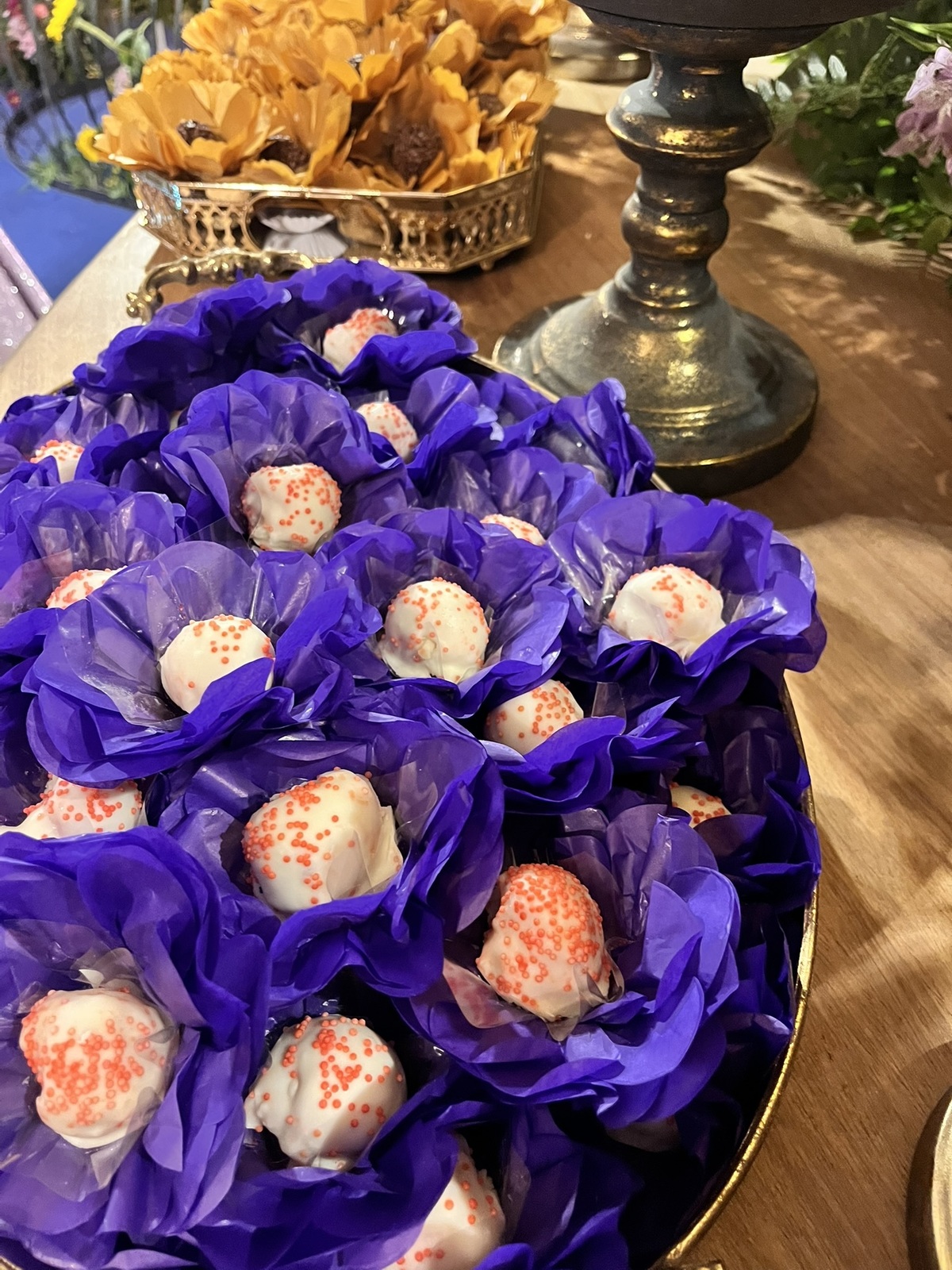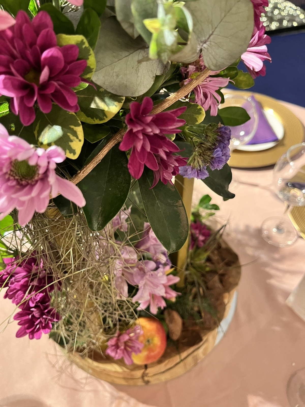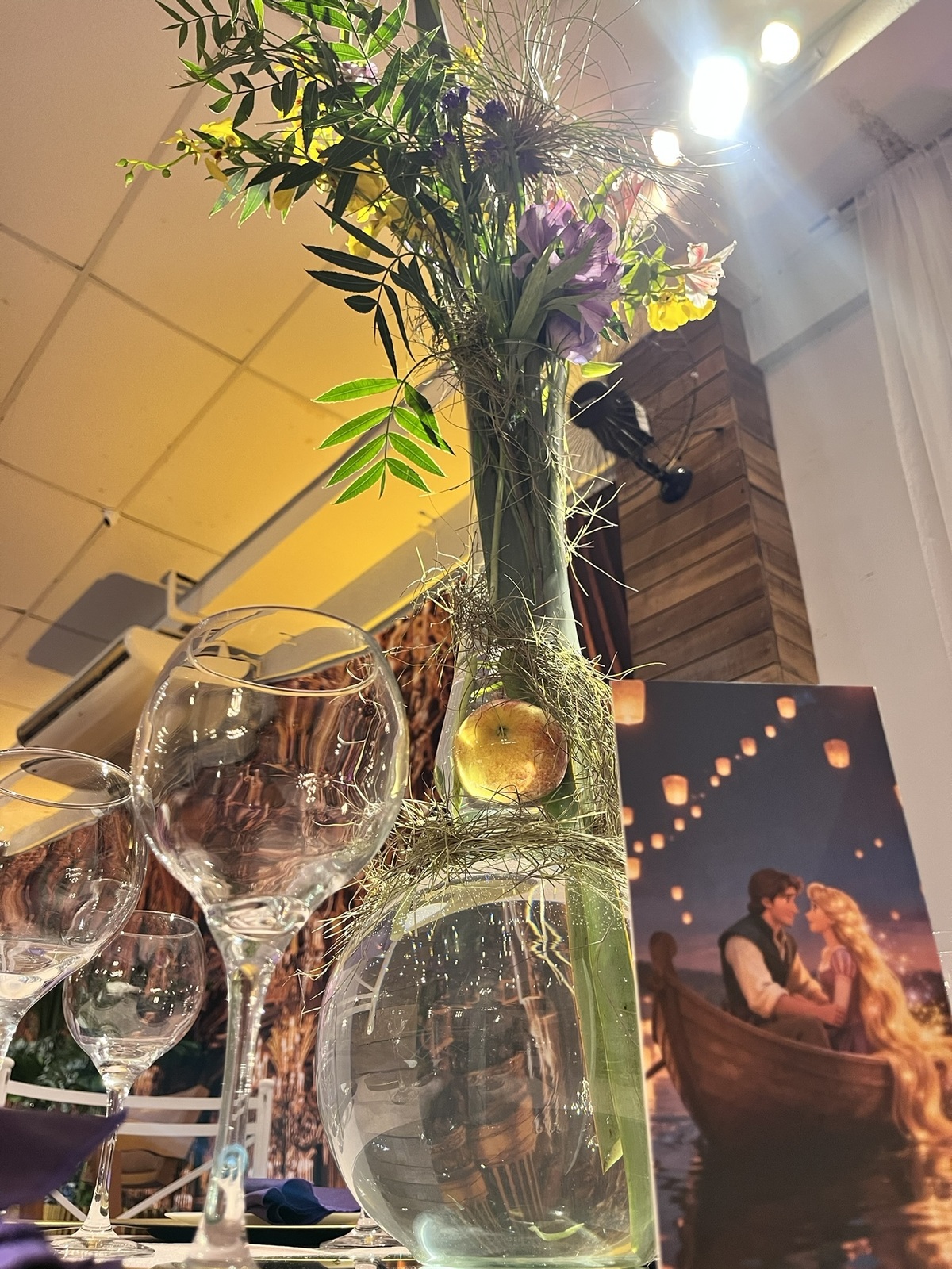 A decoração envolvia, surpreendia e convidava a olhar com calma — dos centros de mesa aos elementos suspensos, tudo conversando entre si!
