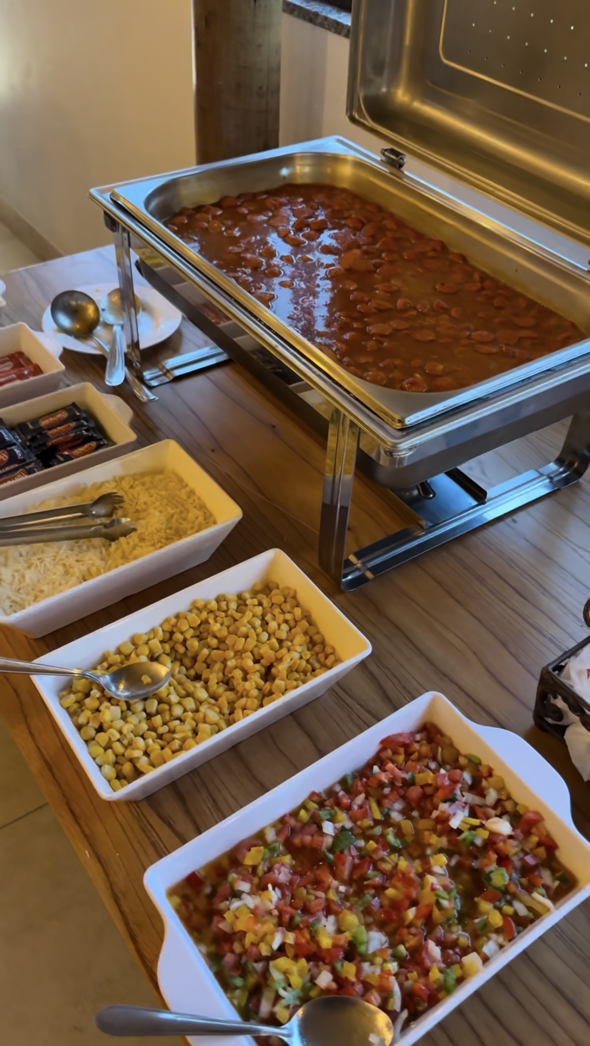 Além da ambientação, a experiência foi completa com um buffet pensado para agradar toda a família, trazendo praticidade, sabor e conforto ao longo da celebração.